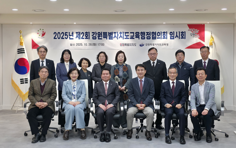 두 기관은 28일 오후 도교육청에서 **‘2025년 제2회 강원특별자치도 교육행정협의회’**를 열고, ▲2026년도 비법정 협력사업 분담 비율 결정 ▲법정전입금 예산 편성 및 전입 시기 협의 ▲학생맞춤통합지원 체계 구축 협조 등 3개 안건을 심의했다.