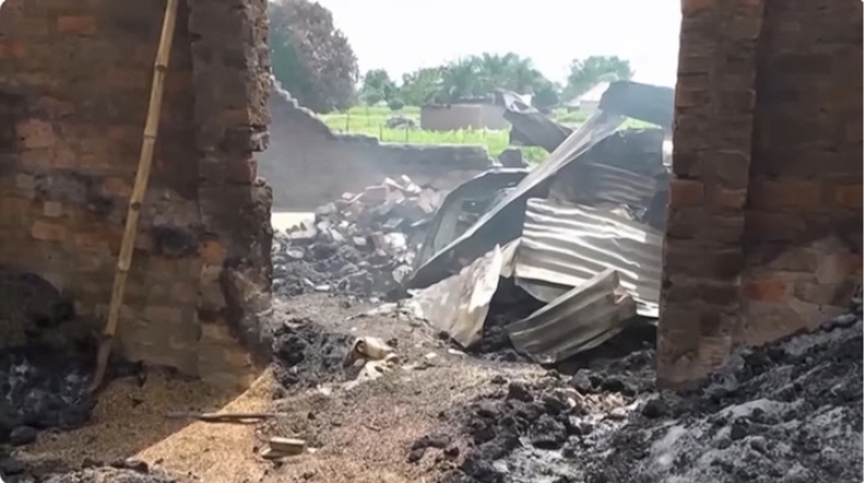 이슬람 무장집단에 의해 전소된 기독교인의 주택. 유튜브 채널 the 7000 club 캡처