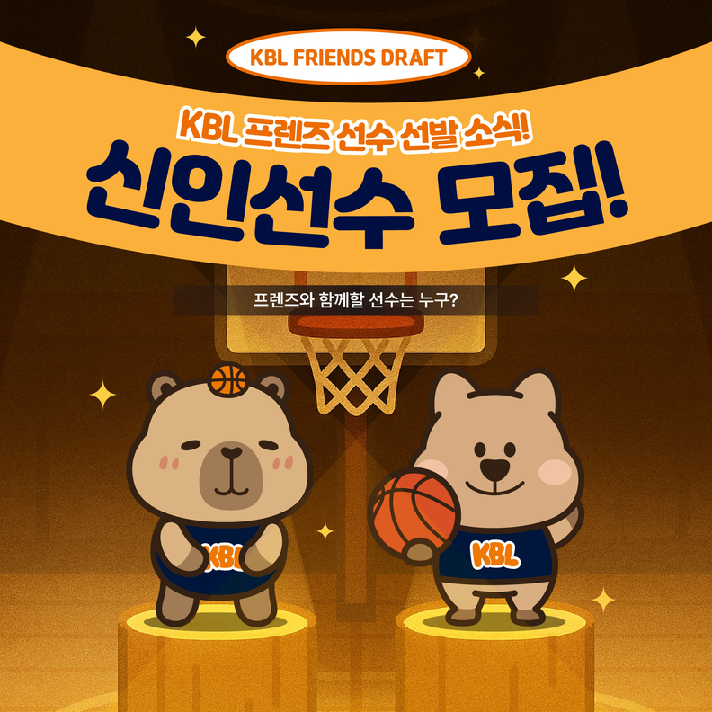KBL 프렌즈는 2022년 KBL 출범 25주년을 기념해 만들어진 캐릭터로, 크블몽·농곰이·바스래빗·블린·공아지 등이 활동 중이다. 이번 신규 캐릭터는 카피바라와 쿼카를 모티프로, 신인선수의 풋풋함과 패기를 담았다.