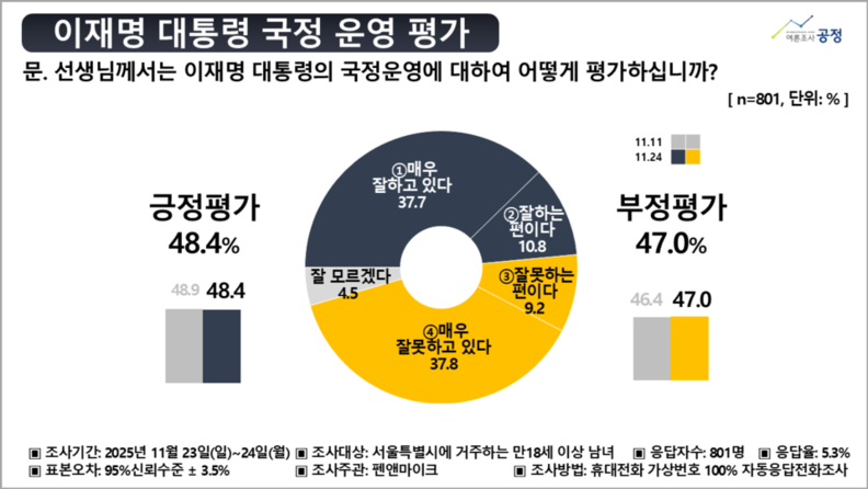 1) 대통령 지지도 긍정 48.4% 부정47%