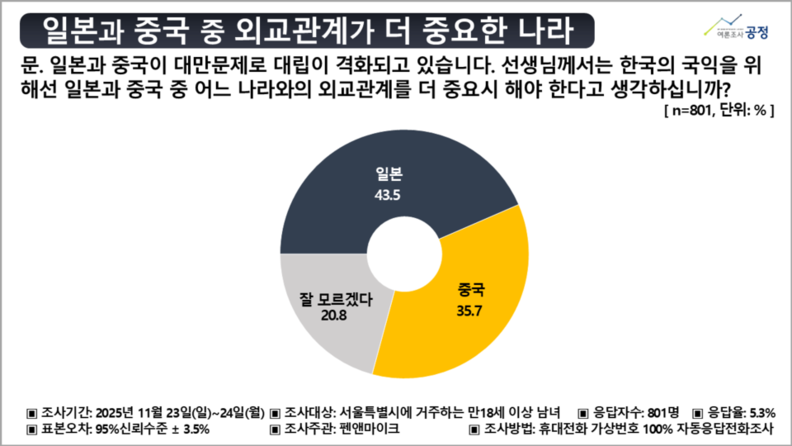 7) "일본 더 중시해야" 43.5% vs "중국 더 중시해야" 35.7%