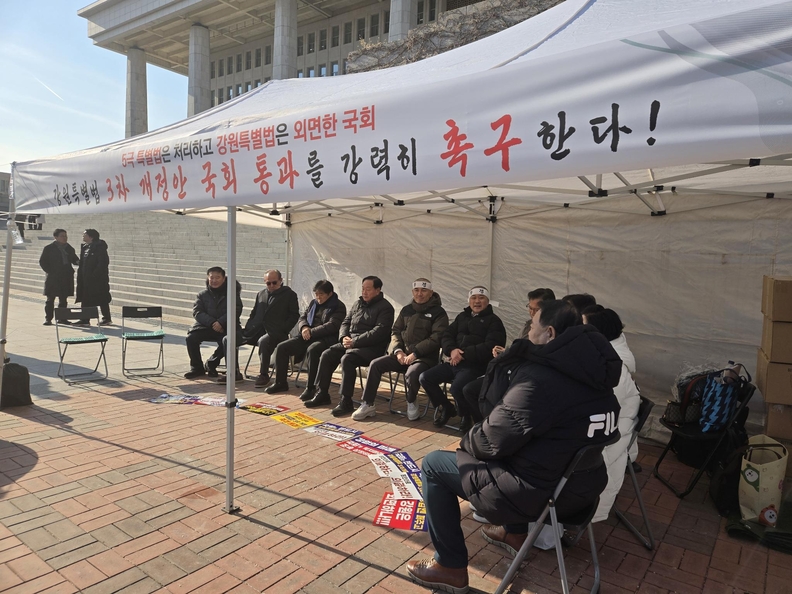 집회 종료 이후 김진태 도지사와 강원지역 의원 등을 비롯한 관계자들과 도민 대표들은 국회 앞에 천막을 설치하고 농성에 돌입했다. 이들은 강원특별법 3차 개정안이 국회에서 처리될 때까지 농성을 이어간다는 방침이며, 국회의 책임 있는 결단을 거듭 촉구하고 있다.