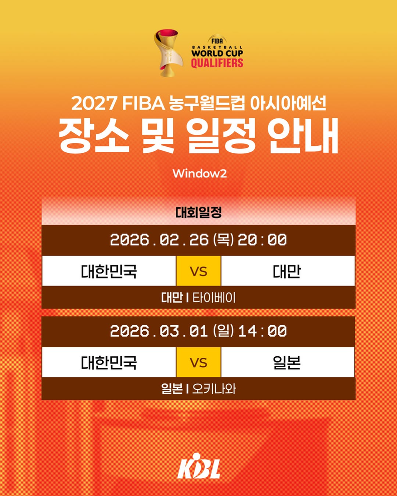 대한민국농구협회는 부상 변수를 반영해 일부 엔트리를 조정하고 대만·일본과의 원정 2연전에 출전할 12명을 최종 발표했다. 대표팀은 2월 26일 대만 타이베이에서 대만과 경기를 치른 뒤, 3월 1일 일본 오키나와에서 일본과 맞붙는다.