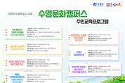 부산광역시 수영구(구청장 강성태)는 문화 인력을 양성하고 지역 주민에게 한층 높은 수준의 문화 향유의 기회를 제공하고자 '수영문화캠퍼스'를 운영한다고 밝혔다. 수영문화캠퍼스는 이론 학습부터 현장 체험까지 다양한 활동을 통해 지역 청년들이 문화기획자로서의 역량을 키우고 실무 능력을 갖춘 인재로 성장할 수 있도록 지원하는 프로그램이다. 또한 지역 주민에게는 인문학, ESG, 문화기획(일반·심화), 영상·미디어 등 다양한 분야의 전문가 교육 및 실습 프로그램을 제공해 단순한 취미 활동을 넘어 삶의 기반이 되는 생활 문화 정착에 기여하고자 한다. 교육 신청은 수영구 주민뿐 아니라 수영구 내에서 활동 중인 생활인구 등 누구나 신청할 수 있으며, 6월 1일부터 프로그램별로 순차적으로 접수하고 있다. 강성태 수영구청장은 "대학이 없는 수영구의 전역을 '수영문화캠퍼스'로 조성해 지역 주민 누구나 수준 높은 일상문화를 누릴 수 있도록 하는 것이 이번 사업의 핵심 목표다. 이를 통해 수영구를 다른 지자체보다 선도적으로 앞서 나아가는 문화도시로 조성하고자 한다"라며 문화를 통한 지역 성장에 대한 높은 의지를 나타내었