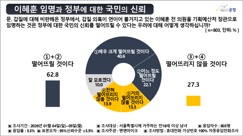 ■ 이혜훈 기획예산처 장관 임명, “정부 신뢰 떨어질 것” 62.8%