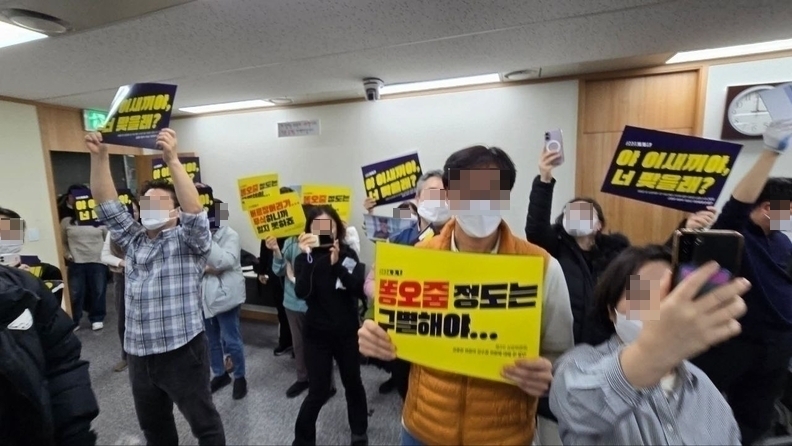 노조 측은 퇴임식에 앞서 과거 김 위원의 발언을 발췌한 자극적인 문구가 적힌 피켓을 행사장 벽면에 부착하고 무리를 지어 집단 시위를 벌였다. 이 과정에서 행사 시작 전부터 노조 측과 김 위원 지지자들 사이에 고성이 오가는 실랑이가 벌어졌고, 일부 구간에서는 서로 몸을 밀치는 물리적 충돌 상황도 발생했다. 계속 이어진 이러한 모습에 대해 참석자들 사이에서는 “공식 행사에서까지 이런 방식의 항의가 허용되는 것이냐”는 당혹스러운 반응이 나왔다.