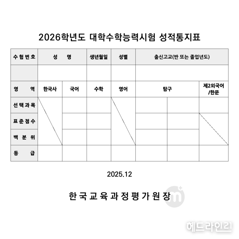 이번 수능의 최대 변수는 영어 영역이었다. 원점수 90점 이상인 1등급 비율은 3.11%에 그쳤다. 이는 절대평가 전환 이후 가장 낮았던 2024학년도(4.71%)보다도 훨씬 낮은 수치로, 수시 모집에서 수능 최저학력기준을 충족하지 못하는 수험생이 속출할 것으로 우려된다.