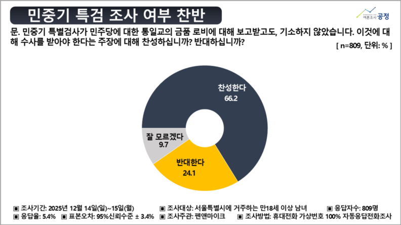 6) '민주당 불기소' 민중기 특검에 대한 "수사 찬성" 66.2% vs "반대" 24.1%