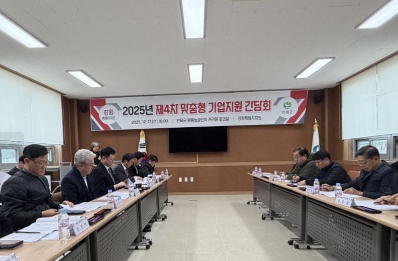 강원특별자치도(김진태 도지사)는 12월 17일 인제군 원통농공단지 관리동 회의실에서 올해 네 번째이자 마지막 맞춤형 기업지원 간담회를 개최했다.