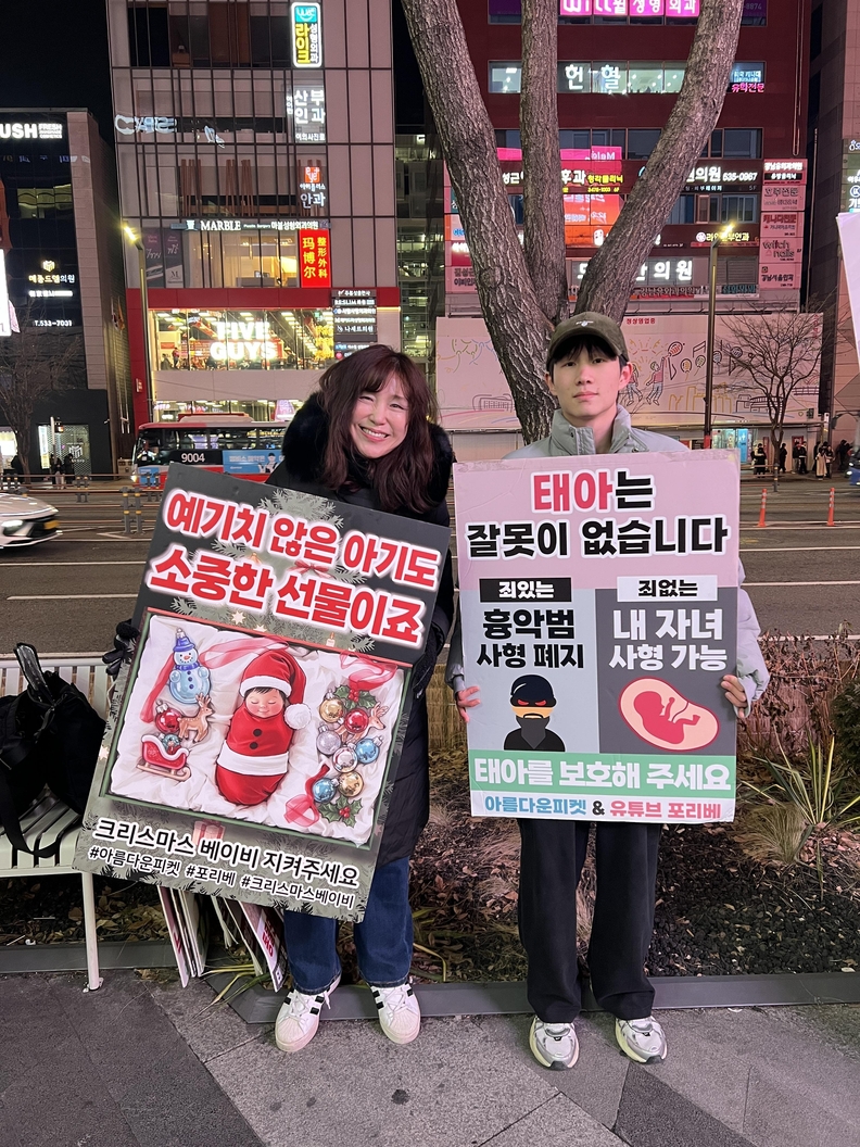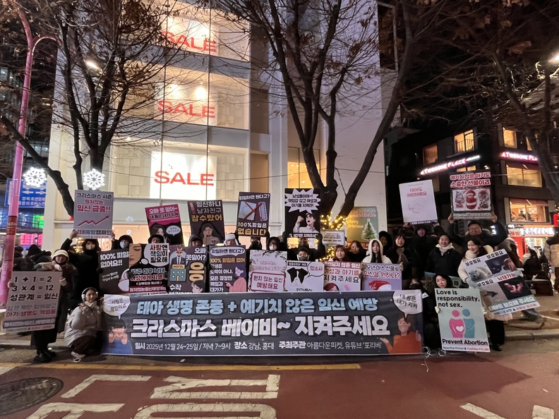 태아 생명 존중 비영리단체 아름다운피켓(대표 서윤화)가 2025년 성탄절을 맞아 서울 홍대와 강남 일대에서 진행한 크리스마스 태아생명존중 캠페인을 마무리했다.