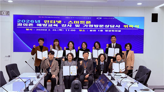 도는 26일 오전 11시 도청 본관 1층 영상회의실에서 2026년 인터넷·스마트폰 과의존 예방·해소 사업 추진을 위한 예방교육 강사 및 가정방문상담사 위촉식을 개최했다.