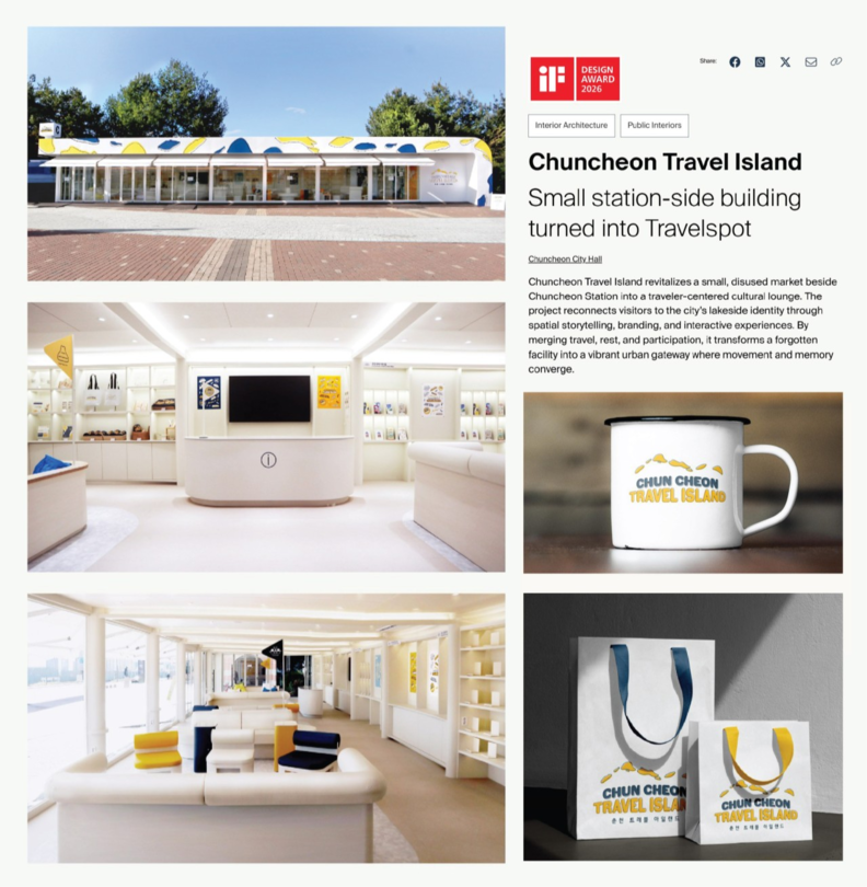 강원디자인진흥원(원장 진재한)은 ‘춘천 트래블 아일랜드’가 세계 3대 디자인상으로 꼽히는 ‘iF 디자인 어워드 2026(iF Design Award 2026)’ 실내건축(Interior Architecture) 부문에서 본상을 수상했다고 밝혔다.