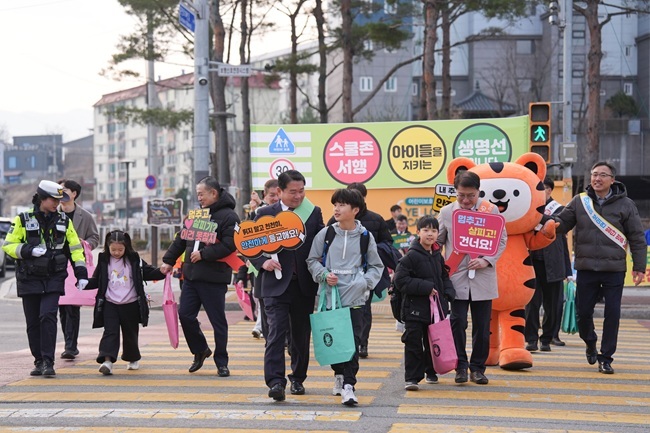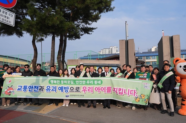 강원특별자치도가 새 학기를 맞아 어린이 교통사고 예방을 위한 등굣길 안전 캠페인을 펼쳤다.