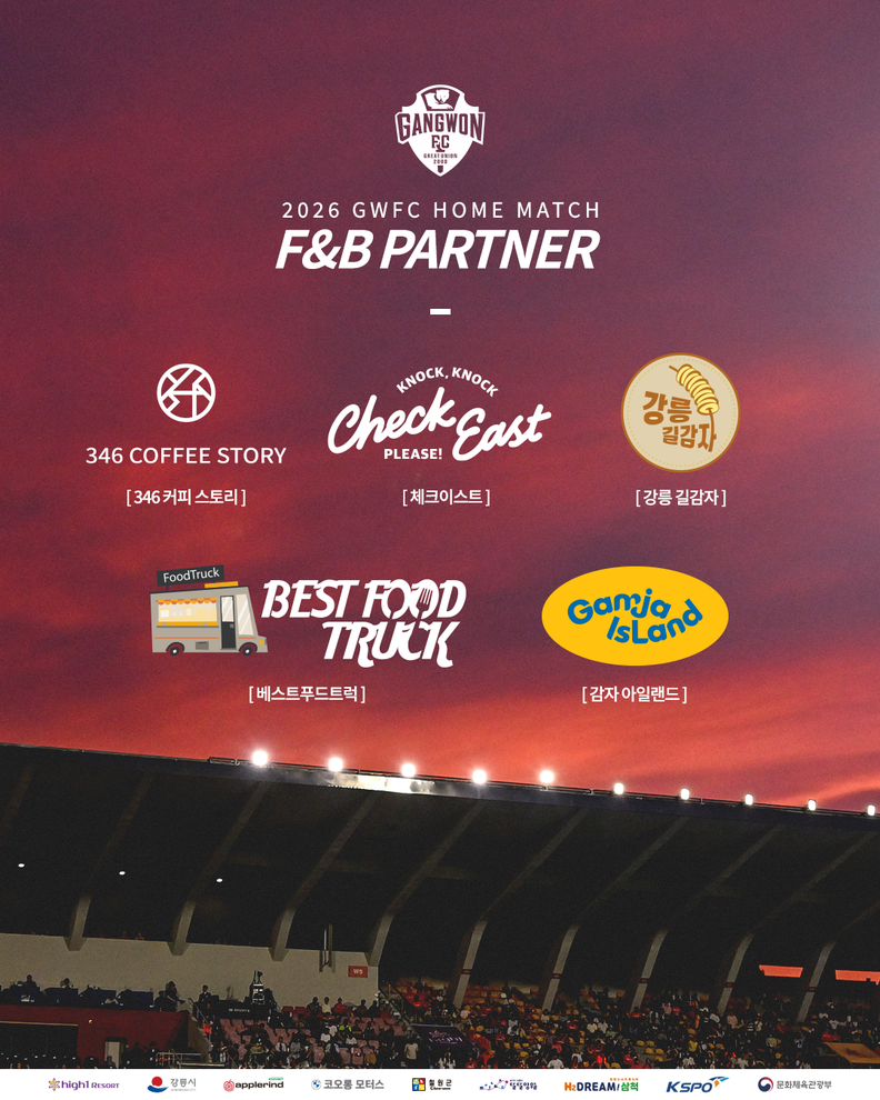강원FC는 2026시즌 강릉하이원아레나에서 열리는 홈경기에서 강원 지역을 대표하는 먹거리 브랜드와 협력해 다양한 식음료 콘텐츠를 운영한다고 밝혔다. 경기장을 찾는 팬들이 축구 관람과 함께 강원 지역의 로컬 먹거리를 즐길 수 있도록 하기 위한 취지다.