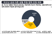타고난 성별과 무관하게 개인이 주장하는 성별을 법적으로 인정하는 방안에 대해 국민 다수가 부정적인 인식을 보인다는 여론조사 결과가 나왔다. 여론조사공정이 거룩한방파제통합국민대회의 의뢰로 실시한 ‘차별금지법 관련 국민 인식 조사’ 결과, 타고난 성과 다른 성별을 주장할 경우 이를 법적으로 인정하는 데 대해 ‘반대한다’는 응답이 65.8%로 집계됐다. ‘찬성한다’는 응답은 24.2%였고, ‘잘 모르겠다’는 응답은 10.0%로 나타났다. 연령대별로는 전 세대에서 반대 의견이 우세했다. 만 18~20대 응답자의 75.8%가 반대 입장을 밝혔고, 30대 역시 73.9%가 반대했다. 40대(69.1%)와 50대(69.9%)에서도 반대 비율이 높았으며, 60대(57.5%)와 70세 이상(49.3%)에서도 반대 응답이 가장 많았다. 연령이 높아질수록 찬성 비율이 일부 증가하는 경향은 있었지만, 전체적으로는 법적 인정에 부정적인 인식이 우세했다. 지역별로는 서울(69.5%), 경기·인천(68.3%), 대전·세종·충남·충북(67.0%), 대구·경북(69.6%) 등 대부분 지역에서 반대 응답이 과반을 넘겼다. 부산·울산·경남(60.9%)과 광주·전남·전북(63.1%)에서도 반대