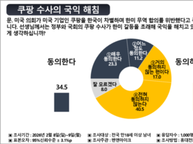 더불어민주당과 조국혁신당의 합당 구상을 두고 국민 여론이 찬성보다 반대 쪽으로 기울어 있다는 조사 결과가 나왔다. 정치권 일각에서 제기되는 ‘진보 진영 결집’ 구상과 달리, 유권자 다수는 이를 자연스러운 통합보다는 정치적 계산으로 바라보고 있는 것으로 풀이된다. 펜앤마이크가 여론조사 전문기관 여론조사공정(주)에 의뢰해 지난 1일과 2일 이틀간 전국에 거주하는 만 18세 이상 남녀 1천명을 대상으로 양당 합당에 대한 의견을 물은 결과, 반대한다는 응답이 43.4%로 찬성 34.2%를 오차범위 밖에서 앞섰다. 잘 모르겠다는 응답은 22.4%였다. 합당에 대한 부정적 인식이 찬성을 9.2%포인트 앞서며, 여론 전반에서는 신중하거나 회의적인 시각이 우세한 모습이다. 정치 지형 재편이라는 명분이 충분히 설득력을 얻지 못하고 있다는 해석도 나온다. 지역별로 보면 수도권과 영남권에서 반대 응답이 뚜렷했다. 서울에서는 반대 45.3%, 찬성 28.6%로 격차가 컸고, 경기·인천 역시 반대 42.6%, 찬성 34.6%로 반대가 앞섰다. 대구·경북에서는 반대가 50.0%로 절반을 차지했으며, 부산·울산·경남과 강원·제주에서도 반대 응답이 각각 44.0%, 43.9%로 나타났다